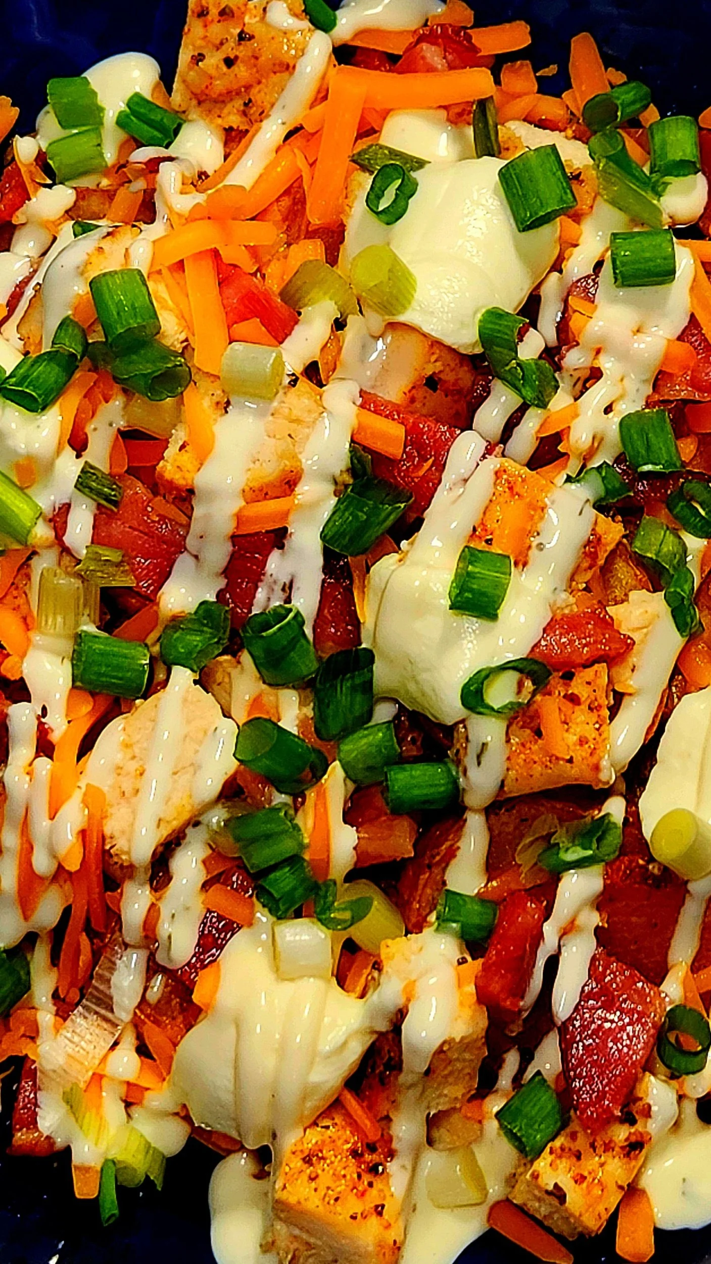Chicken Bacon Ranch Loaded Potatoes With Cheddar Cheese And Scallions